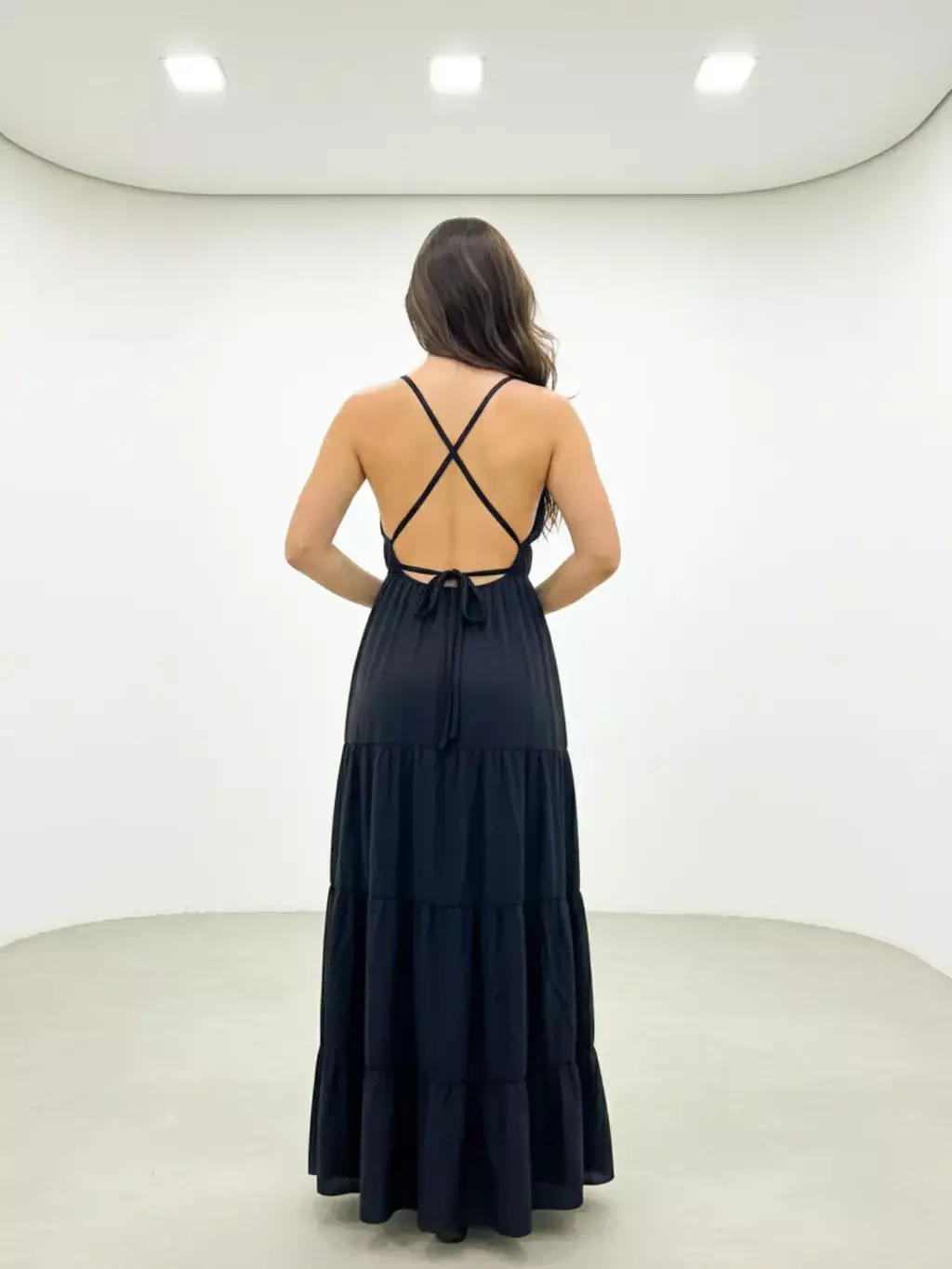 Macaquinho Vestido Decote Quadrado Costa Fechada